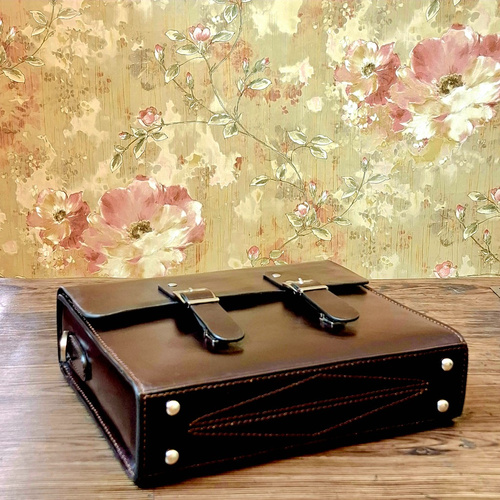 کیف چرمی اداری دانشجویی مدل آرتین از چرم طبیعی گاوی سماقی رنگ بصورت کاملا دست دوز دوخته شده است .این کیف زیبا وجادار در ابعاد30 در26 در8 سانت بوده ودارای رنگ لبه حرفه ای واستر کشی کامل می باشد.کیف مذکور علاوه بر دسته ،بند دو تکه بلند چرمی وقابل تنظیم نیز دارد .