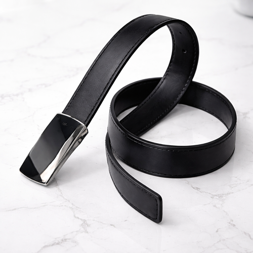 کمر بند چرم طبیعی مشکی دارای رنگ لبه حرفه ای با دوخت نخ قهوه ای کاملا دست دوز ودارای سکگ نقره ای می باشد .